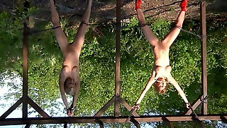 Sexy buxom blonde teens played thrilling outdoor bondage