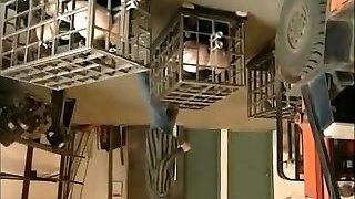 Big tittied blonde and red haired chick in the metal cage are punished hard