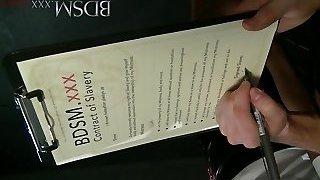 Busty teenie slave stands punishment humiliation and fuck in bondage & discipline cage