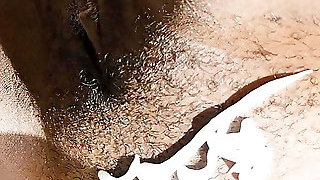 Shaving her little ebony ass & pussy then shower clean