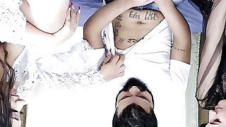 Double Internal Ejaculation Day with Two Hot Big Tits Ample Ass Horny Housewives in a Crazy Handsome and Wild Threesome Sex Hardcore Party