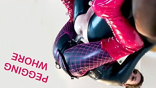 Two thick cock guys stuff their rods in all the fuck holes on tramp in a latex BDSM suit