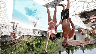 Pool man nibbled kinky teen at the pool, she loves cum and hard fucking