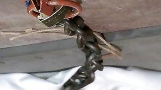BDSM sub throatfucked and muff toyed