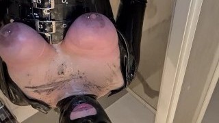 Slave Superslut-Orgasma Celeste in dark-hued latex shower after a hard movie session