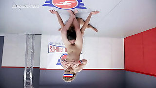 Big Breasted Wrestler Fighting a Smaller Gal for Domination