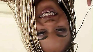 Almost crucified titless black bi-atch is belted and mouthfucked hard