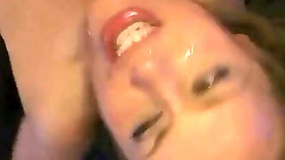 Blonde babe gets roped, gagged and facialized