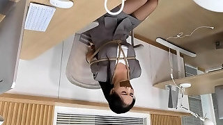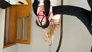 Tattooed skiny teenage Lydia Black tied with her gams apart and abused