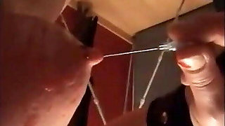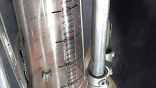 Mistress empties subs scrotum into a glass with multiple ruined orgasms