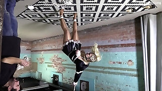 Trendy maid flirts with a cunt tester