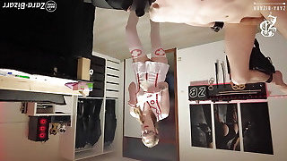 Latex Danielle lock userdate slave on couch and make him sperm geyser