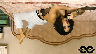 Miss Demeanor Bare Wrestling a Guy Pegging His Loser Ass