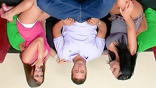 Homemade flick of strapped up guy getting pleasured by four pornstars
