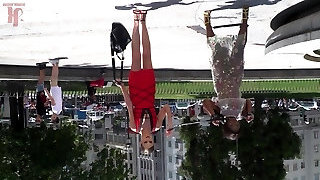 Coral Joice and Julia De Lucia tied up in public with ball gags