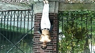 Teen amateur gimp tied up outdoors has screaming orgasm and endures anguish