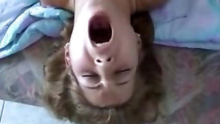 Screams of pleasure of a young hooker, jizz in her throat