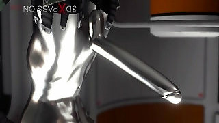 Sci-fi theme. Male Android Rams Hard A Red-hot ebony in the lab