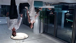 Two Hot Dominatrix torture a roped victim by tickling him ,laughing extreme !