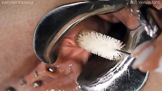 Tough looking brunettes know what water punishment is all about
