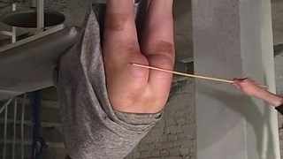 Skinny brunette is torturing her sex slave in the basement and caning her to enjoy it
