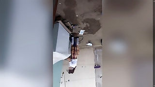 While my step sister was dressing in the toilet, I spied and wanted to empty my nuts