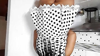 Hottest Black-haired teases Delivery Man without Panties to give him a Handjob in a Sundress No Underwear to not making him jizm