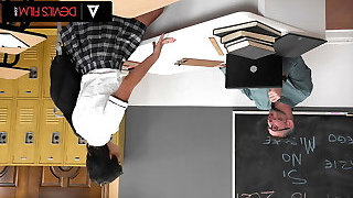 Colegiala siendo castigada por su mal comportamiento y al final le encanta
