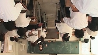 Asian school babe in ropes flashes twat upskirt in class