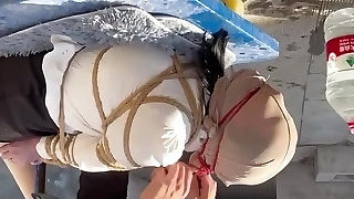 Chinese Beauty In Iron Bondage Outdoors