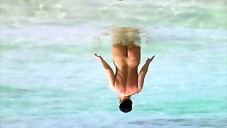 nippleringlover horny milf extreme pierced puffies and pussy swimming naked at public beach