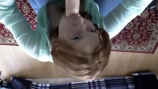 Redhead schoolgirl lets fuck her mouth with tied arms and cum in the gullet