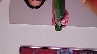 he masturbates me with a thick cucumber, while I shake my large caboose