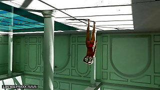 Swimming Pool Wrestling with Hefty Muscly Thighs and Busty Fun Bags Catalia Valentine