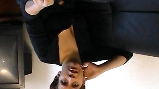 A slim dark haired chick from Germany pleasuring a cock with her asshole